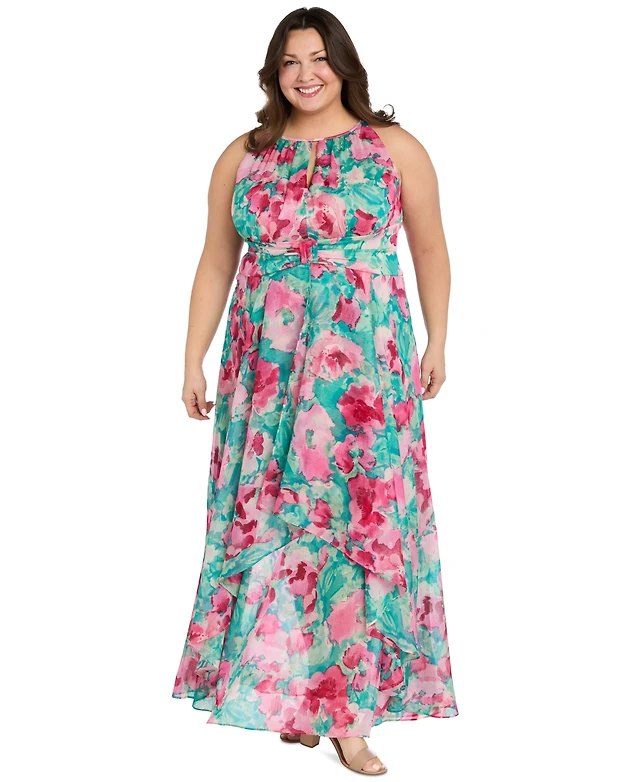 R & M Richards Womens Sleeveless Floral Evening Gown