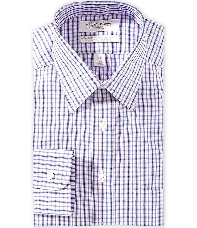 Gold Label Roundtree & Yorke Garrett Fitted Non-Iron Point Collar Checked Pinpoint Dress Shirt