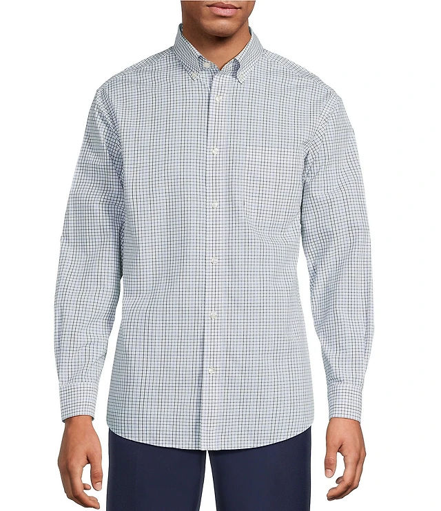 Roundtree & Yorke Big & Tall Performance Stretch The Traveler Long Sleeve Small Check Twill Sport Shirt