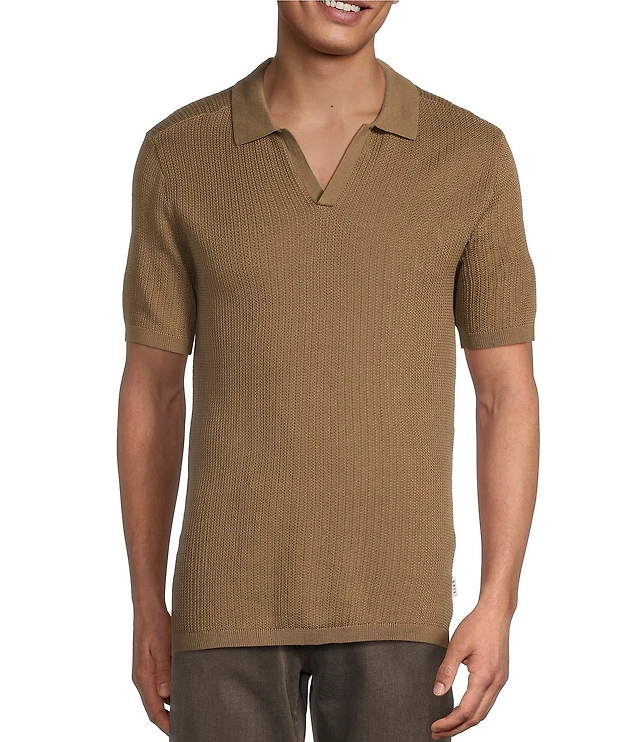 Rowm Short Sleeve Textured Solid Knit Sweater Shirt