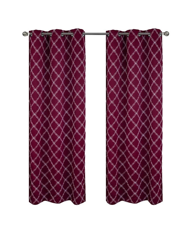 Rt Designers Collection 100% Polyester 140 Gsm Reed Embroidered Grommet Curtain Panel 54" x 90" Burgundy