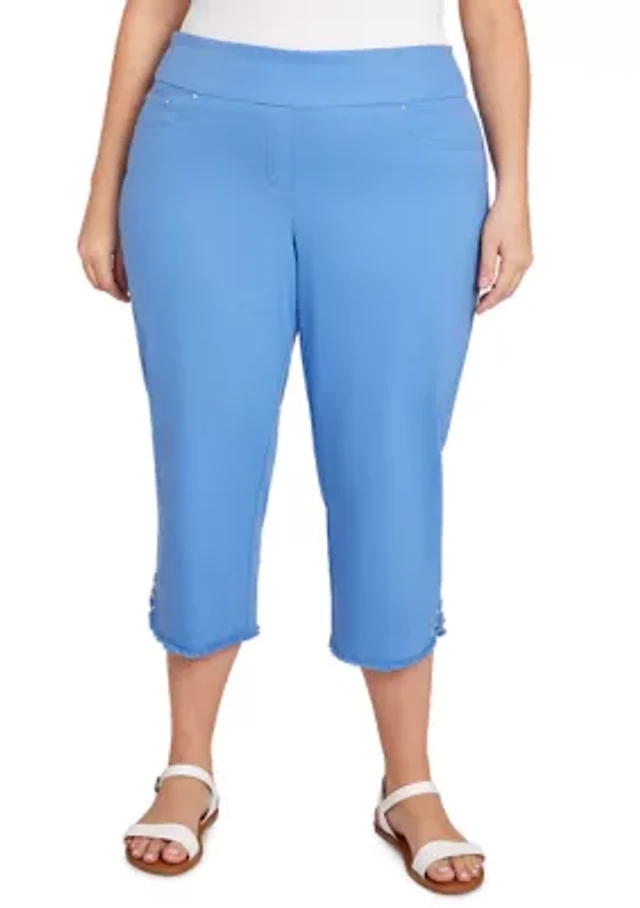Plus Oasis Pull On Fringe Denim Capri Pants