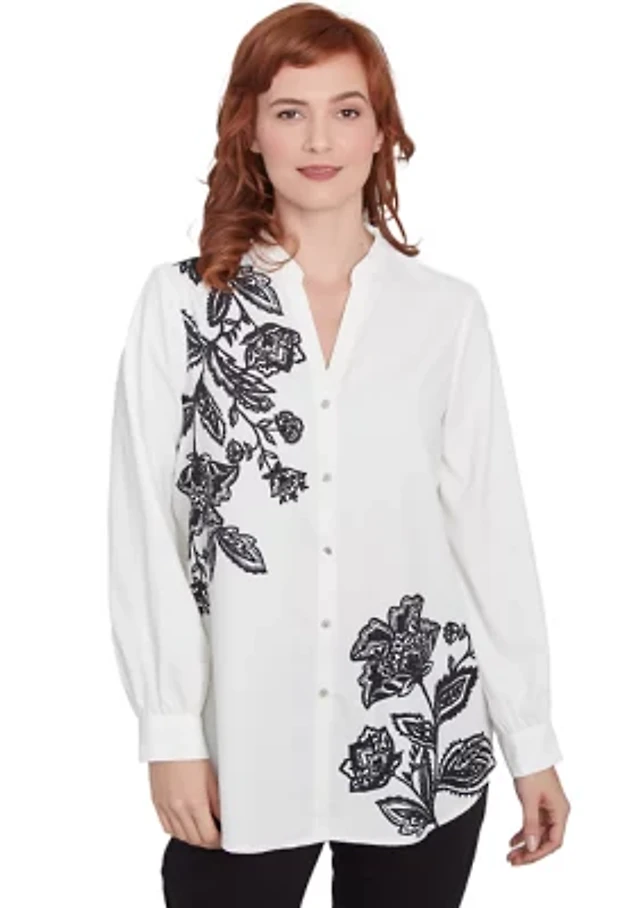 Petite Vintage Floral Tie Front Henley T-Shirt