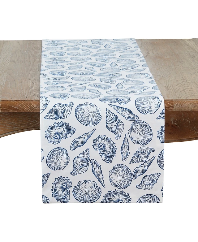 Saro Lifestyle Ocean Breeze Embroidered Seashell Table Runner, 16" x 72"