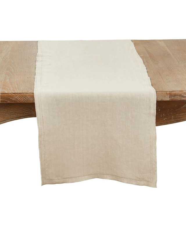 Saro Lifestyle Linen Stonewashed Embroidered Linen Table Runner, 16" x 72"