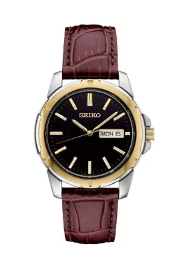 Seiko Men's Essentials Brown Leather Strap Watch 40mm