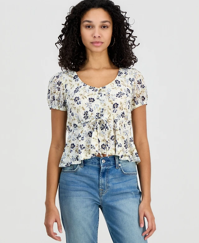 Self Esteem Juniors' Printed Lace Short-Sleeve Babydoll Top