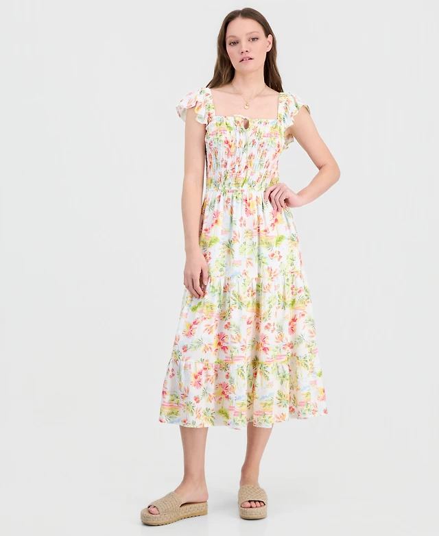 Self Esteem Juniors' Printed Cotton Tiered Midi Dress