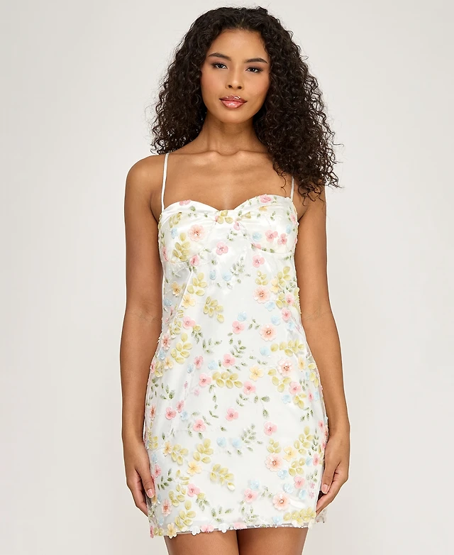 Seni & Cade Juniors' 3D Flowers Sequin Short Dress