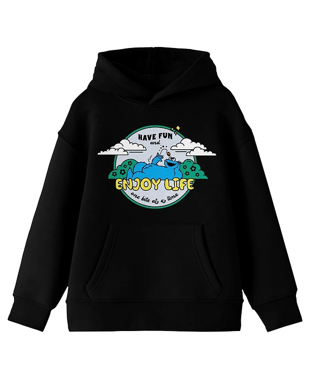 Sesame Street Boys Cookie Monster Enjoy Life Long Sleeve Youth Black Hooded Sweatshirt-xxl