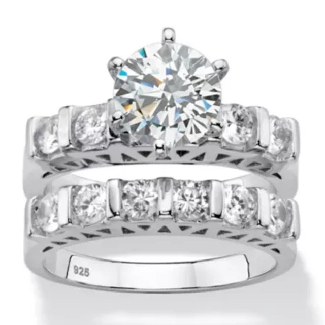 4.25 Cttw. Round Cubic Zirconia Platinum-plated Silver 2-Piece Bridal Ring Set
