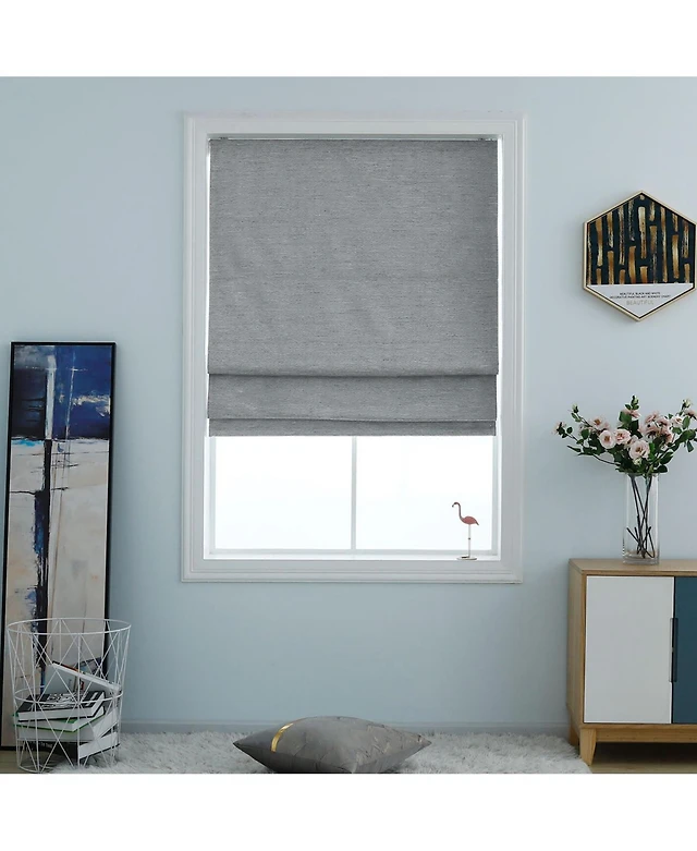 Shadisfy Linen Blended Belgian 100% Blackout Roman Shade Poly 27x64 Light Grey
