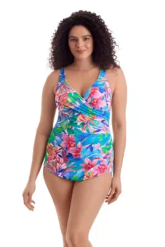 ShapeSolver by Mimi Flamingo Women's Secret Jungle Shirred Front Princess Seam Girl Leg One Piece Swimsuit