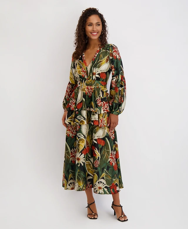 Siena Women's Printed Satin Long-Sleeve Maxi Dress