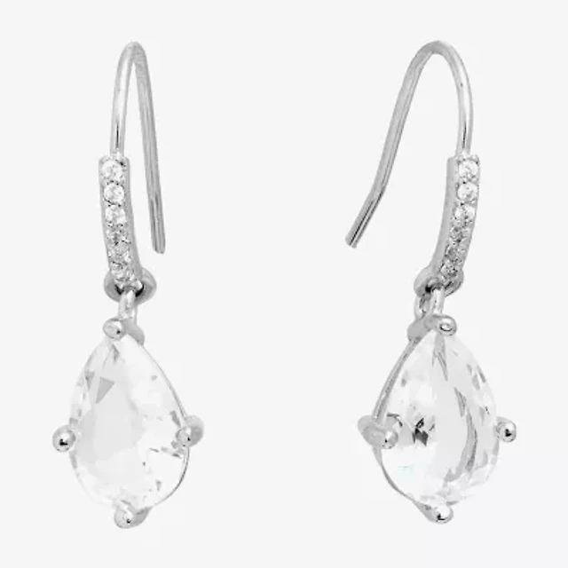 Silver Treasures Womens Crystal Sterling Silver Drop Earrings