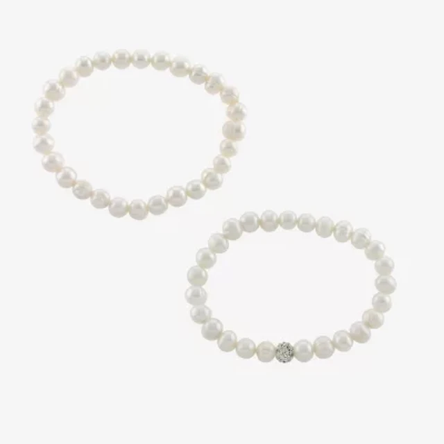 Silver Treasures Cultured Freshwater Pearl Womens 2-pc. White Sterling Silver Bracelet Set