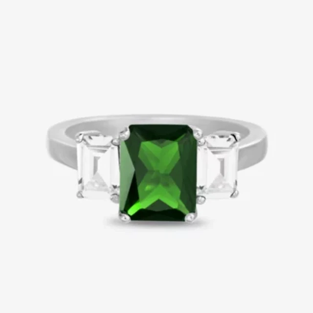 Silver Treasures Womens Cubic Zirconia Sterling Round Delicate Band