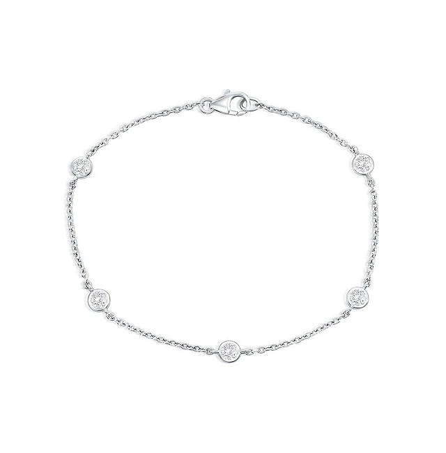 Simona Sterling Silver, Round Bezel-Set Gemstone By The Yard Birthstone Bracelet