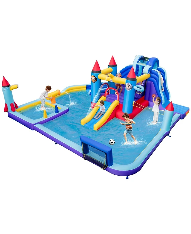 8-in-1 Inflatable Bounce House with Water Slide Ultimate Outdoor Playset for Kids