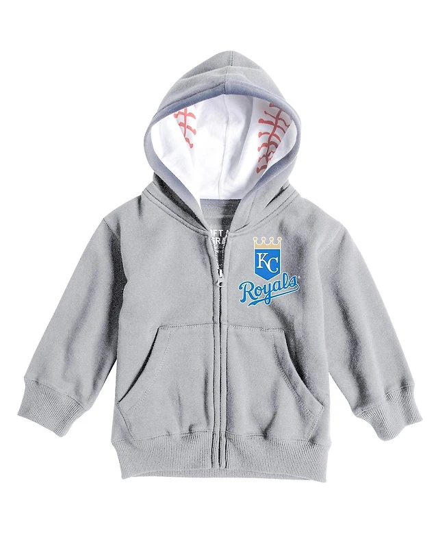 Toddler Boys and Girls Soft As A Grape Heathered Gray Kansas City Royals Baseball Print Full-Zip Hoodie