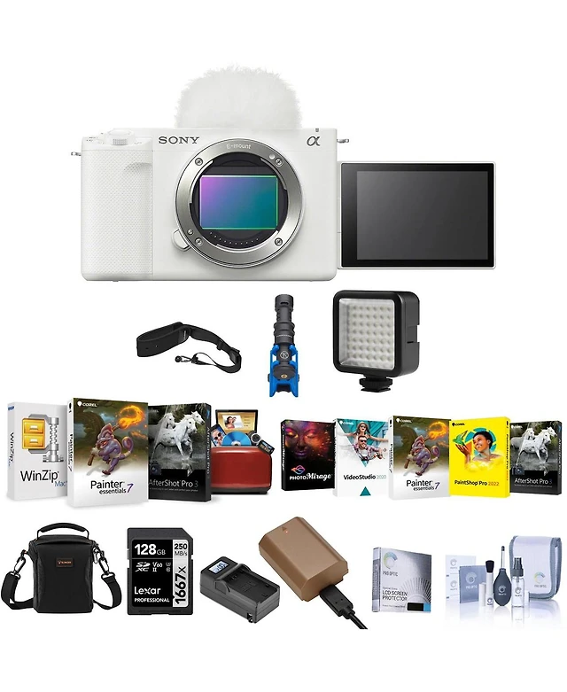 Sony Zv-1F Vlogging Camera, White Bundle with Corel Mac Software Kit, 32GB Sd Card, Shoulder Bag