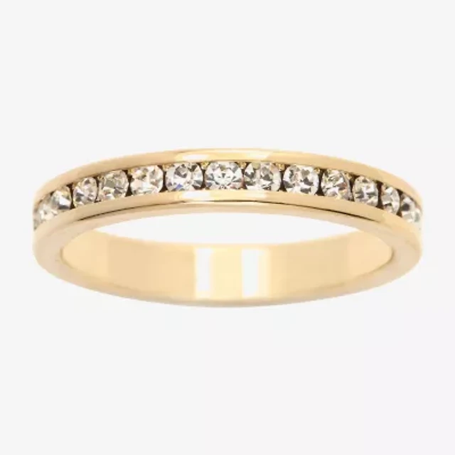 Sparkle Allure Stackable Eternity Womens 3MM Crystal 14K Gold Over Brass Band