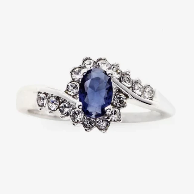 Sparkle Allure Womens Blue Crystal Pure Silver Over Brass Oval Bypass Engagement Ring