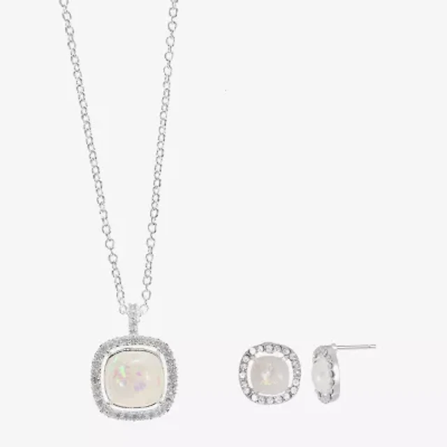 Sparkle Allure Light Up Box Halo Womens Opal Pure Silver Over Brass Square 2-pc. Jewelry Set