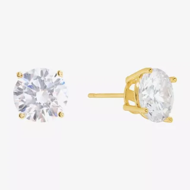 Sparkle Allure Cubic Zirconia 14K Gold Over Brass 9mm Round Stud Earrings
