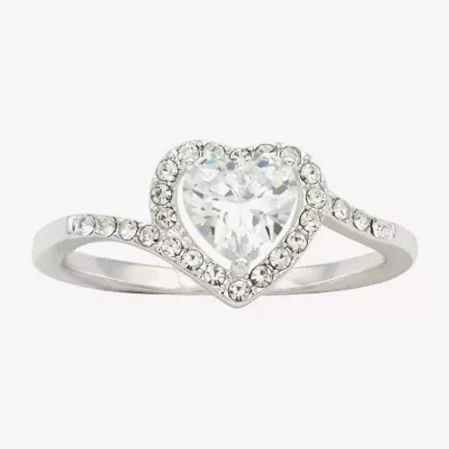 Sparkle Allure Womens Cubic Zirconia Pure Silver Over Brass Heart Halo Cocktail Ring
