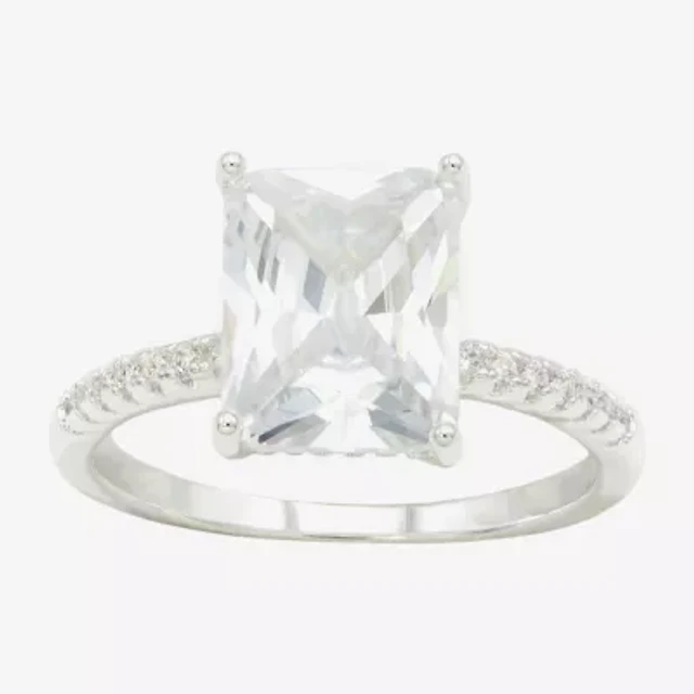 Sparkle Allure Womens Cubic Zirconia Pure Silver Over Brass Engagement Ring