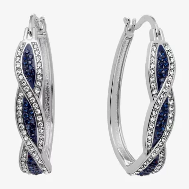 Sparkle Allure Womens Blue Crystal 35mm Hoop Earrings