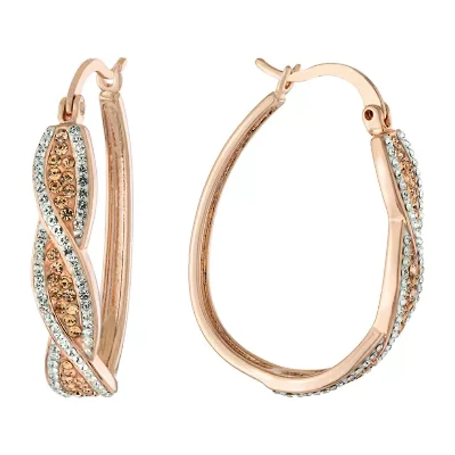 Sparkle Allure Womens Crystal 14k Rose Gold Over Brass 33.7mm Oval Hoop Earrings