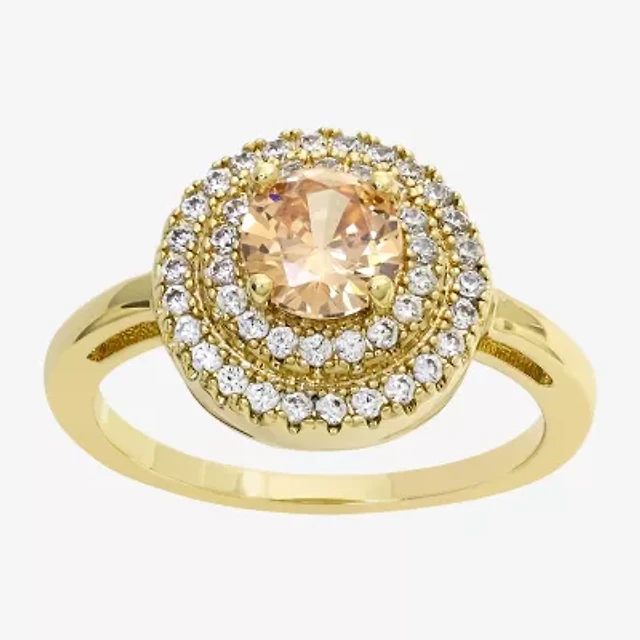 Sparkle Allure Womens Champagne Cubic Zirconia 14K Gold Over Brass Round Halo Cocktail Ring