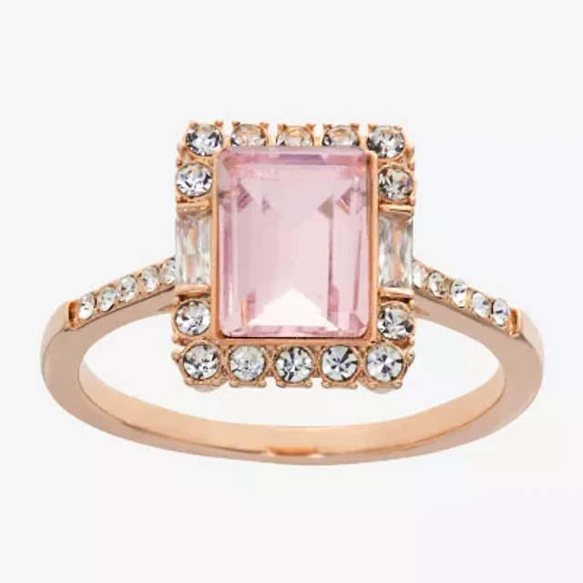 Sparkle Allure Womens Pink Crystal 18K Rose Gold Over Brass Rectangular Engagement Ring