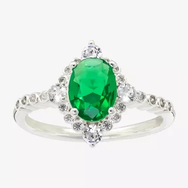 Sparkle Allure Womens Green Cubic Zirconia Pure Silver Over Brass Oval Halo Cocktail Ring