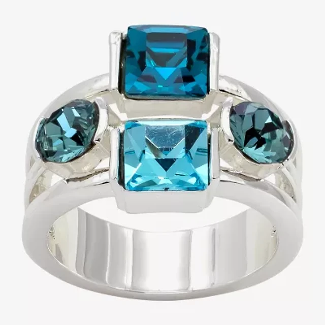 Sparkle Allure Womens Blue Cubic Zirconia Pure Silver Over Brass Oval Solitaire Cocktail Ring