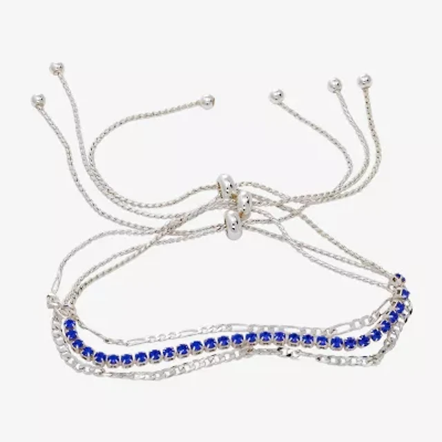 Sparkle Allure Womens Blue Crystal Pure Silver Over Brass Strand Bracelet