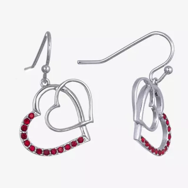Sparkle Allure Womens Red Crystal Pure Silver Over Brass Heart Drop Earrings