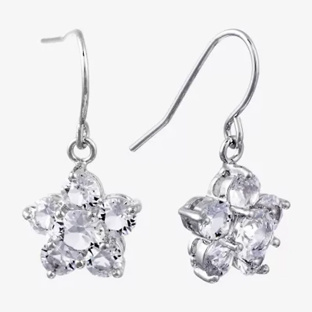 Sparkle Allure Womens Crystal Pure Silver Over Brass Flower Drop Earrings