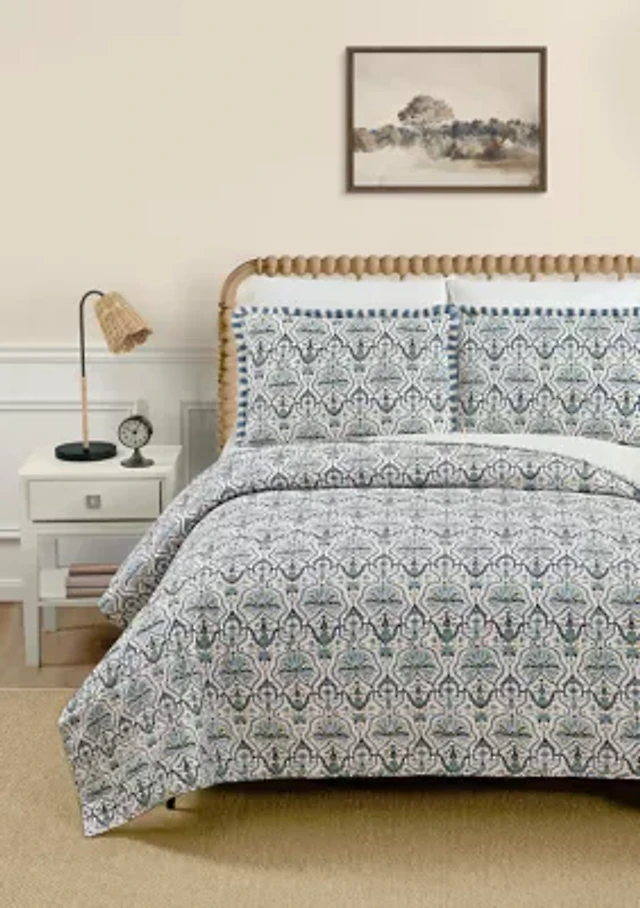Spartina 449 Mystic Moss Damask Cotton Reversible Quilt Mini Set