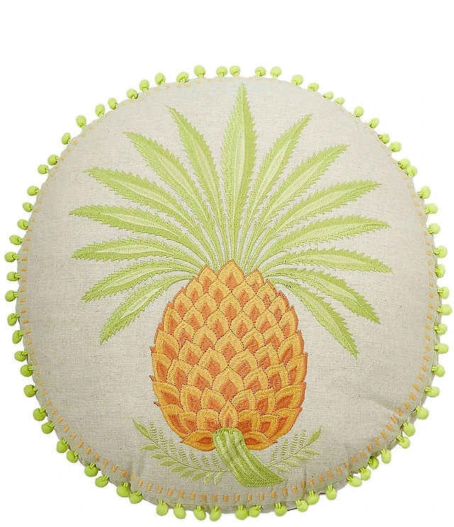 Spartina 449 Queenie Embroidered Pineapple Decorative Round Pillow