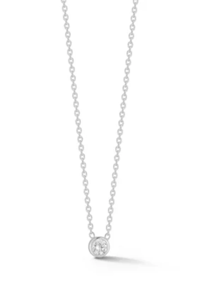 Sterling Silver Cubic Zirconia Bezel Solitaire Necklace