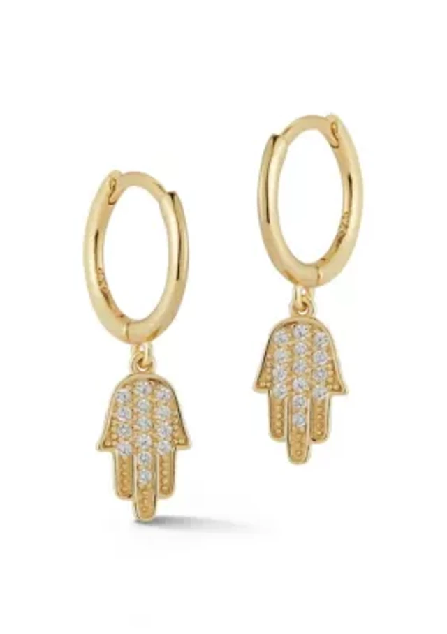 Sterling Silver CZ Hamsa Hand Charm Huggie Hoop Earrings