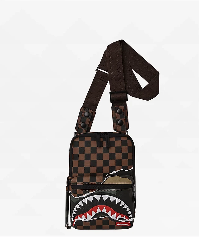 Sprayground Tear It Up Brown Checker Crossbody Bag