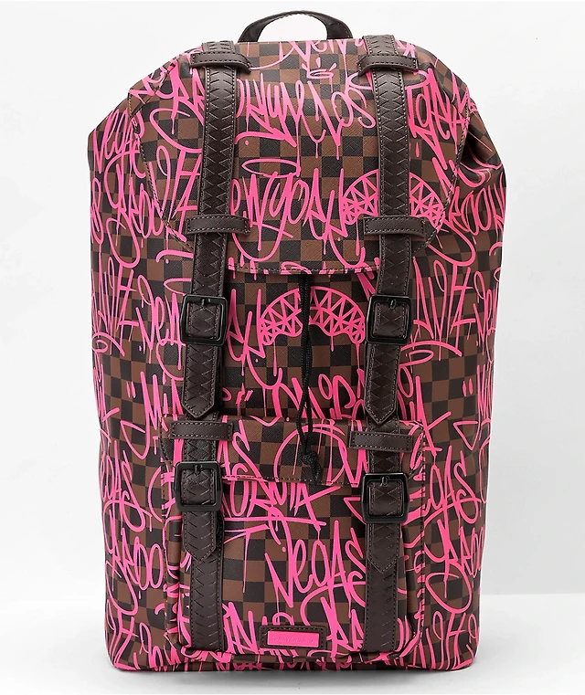 Sprayground Pink Drip DLX Brown Checkered Backpack
