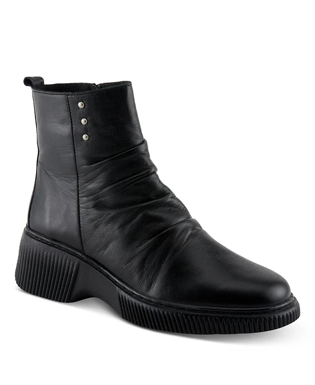 Spring Step Rosado Ruched Leather Bootie with Dual Zippers and Removable Insole