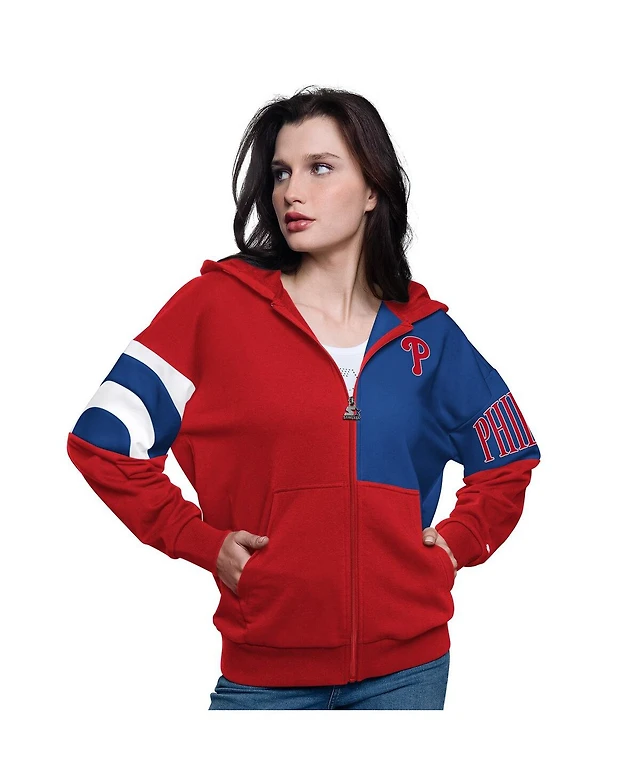 Starter Women's Red/Royal Philadelphia Phillies Curve Ball Full Zip Hoodie Sweatshirt