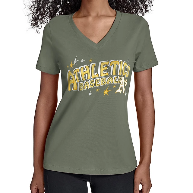 Women's Starter Green Athletics Fireworks Team Name V-Neck T-Shirt