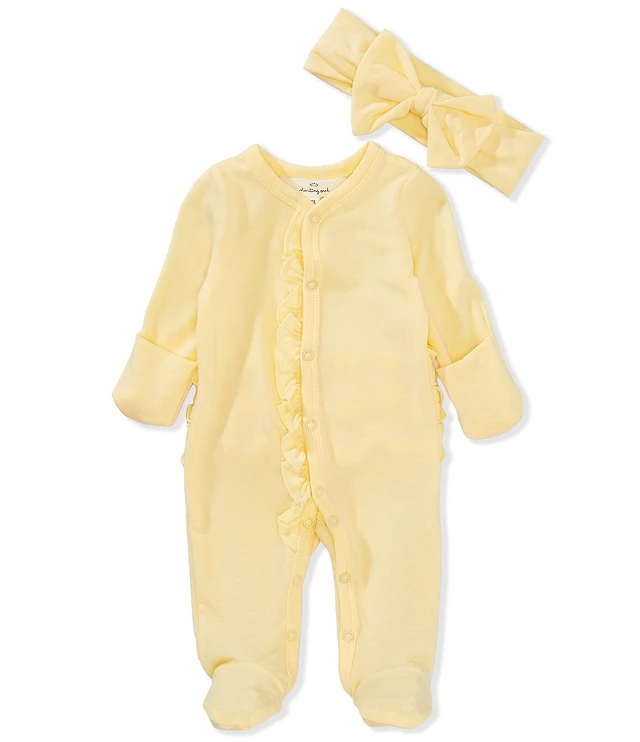 Starting Out Baby Girls Long Sleeve Ruffle Footie Coverall & Matching Bow Headband Set